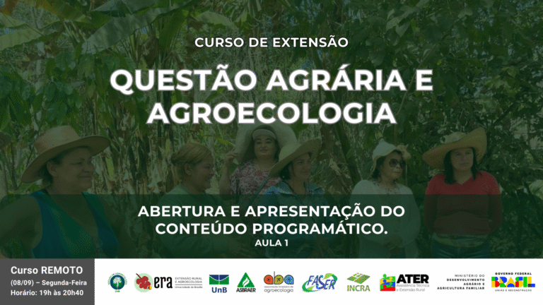 Entre os meses de agosto e outubro de 2025, foi realizado o curso “Questão Agrária e Agroecologia”, promovido pela Universidade de Brasília (UnB), no âmbito das ações formativas do Projeto Extensão Rural e Agroecologia (ERA/UnB). A formação reuniu estudantes, extensionistas,...